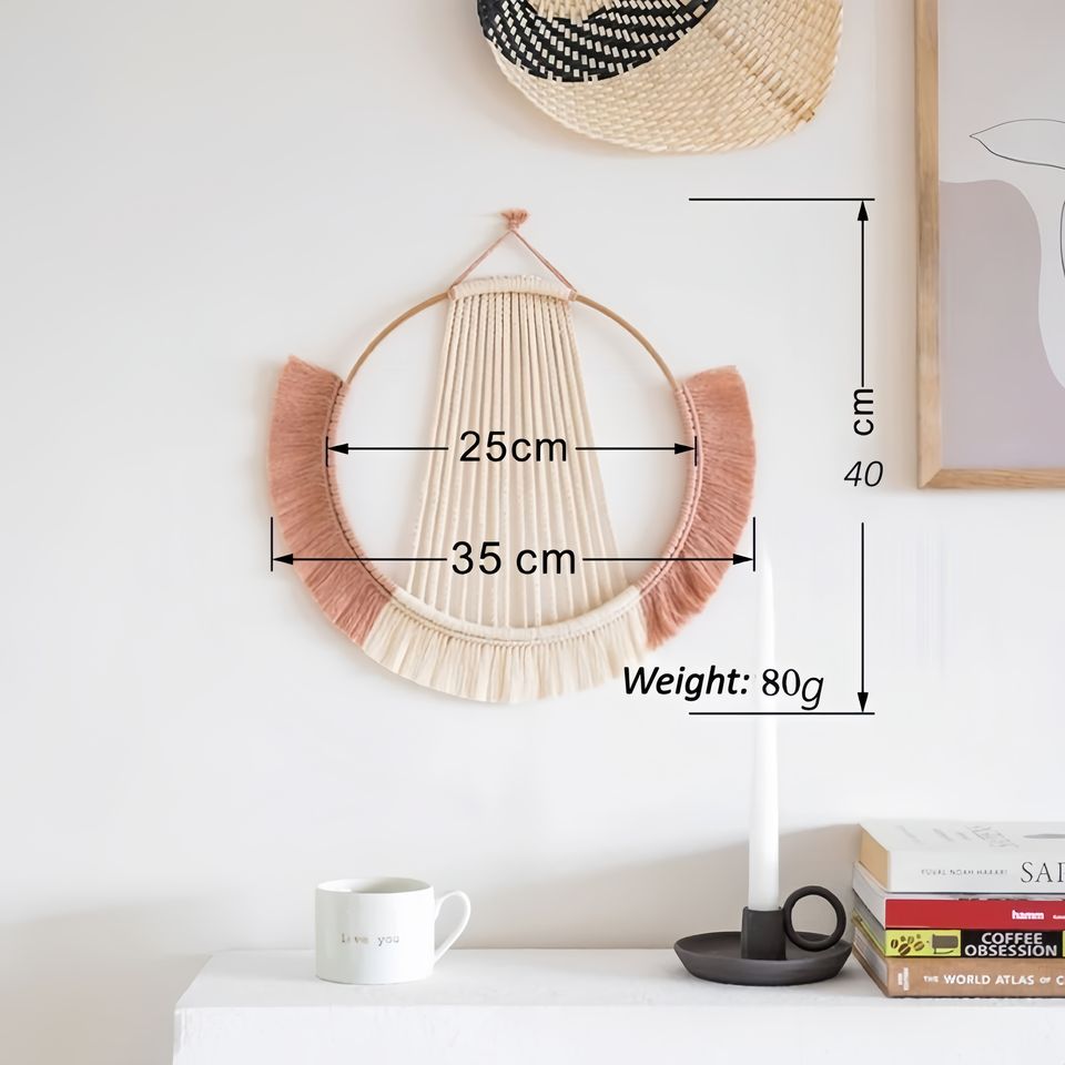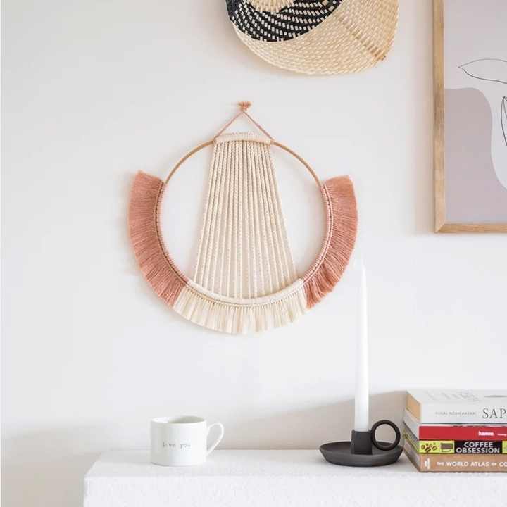 25*35cm precio barato hecho a mano redondo Art Deco decorativo pared colgante arte con flecos de algodón para la decoración del hogar de la sala de estar