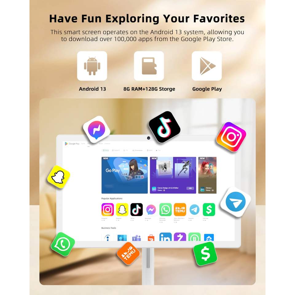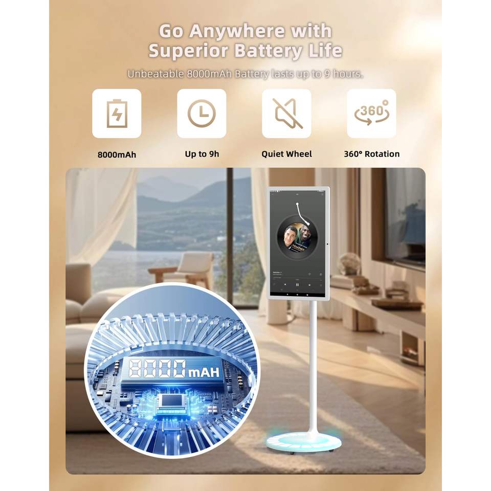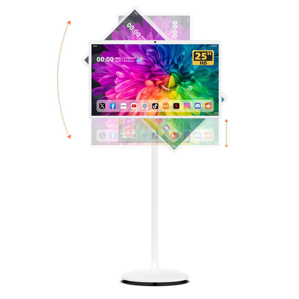 Monitor Portátil Inteligente IPS de 25 Pulgadas, Tipo C, Altavoz Estéreo Hi-Fi, Almacenamiento HD OS, Batería de Larga Duración, Soporte Ajustable con Ruedas