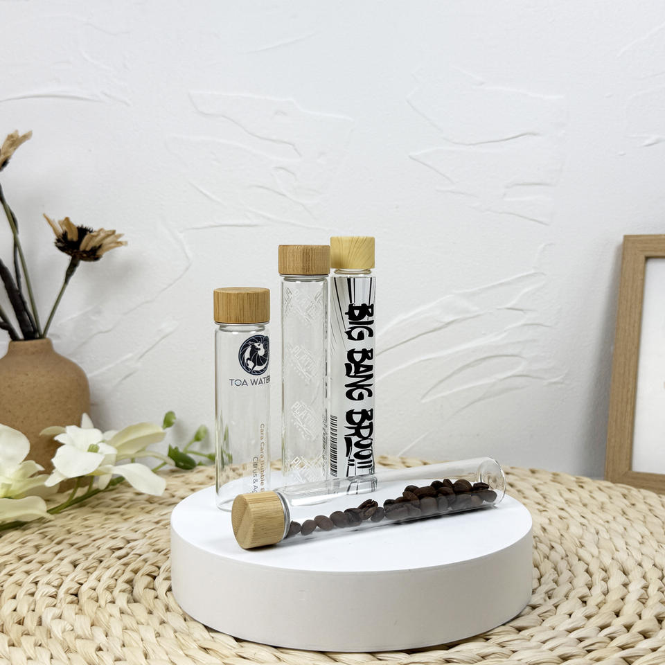 25X115mm Líquido Pequeño A prueba de fugas 40ml Tubos de ensayo transparentes de vidrio con tapas de rosca con tapones de Bambú