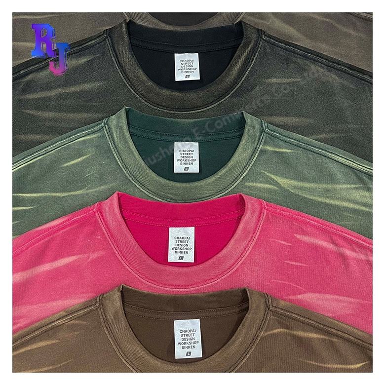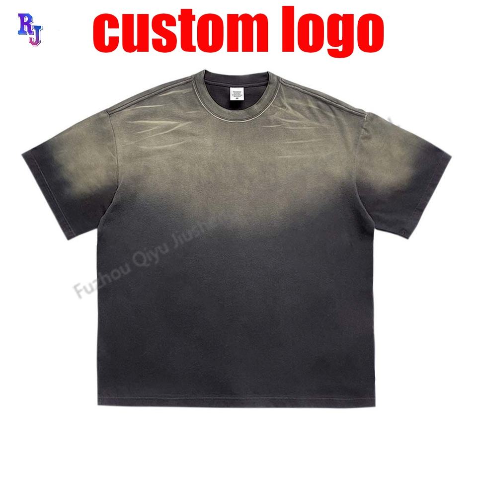 Camiseta con logotipo gráfico personalizado de 250G, camiseta lavada de manga corta Vintage desteñida al sol, Camiseta holgada ajustada con humo Retro para hombre
