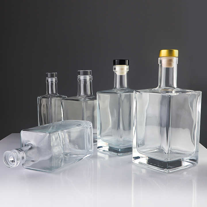 Botella de Vino Cuadrada Alta de Vidrio de 250 ml, 500 ml, 750 ml, Botellas de Licor Transparentes con Base Pesada y Tapas de Vidrio para Envasar Vodka, Ginebra y Ron