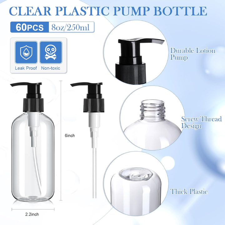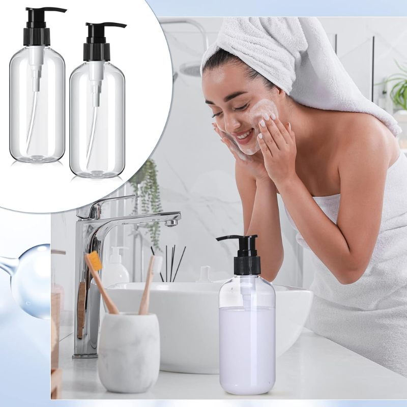 Botella de plástico PET transparente de 250ml, cilindro, champú, loción, lavado corporal, envase cosmético, embalaje, fábrica de Vietnam