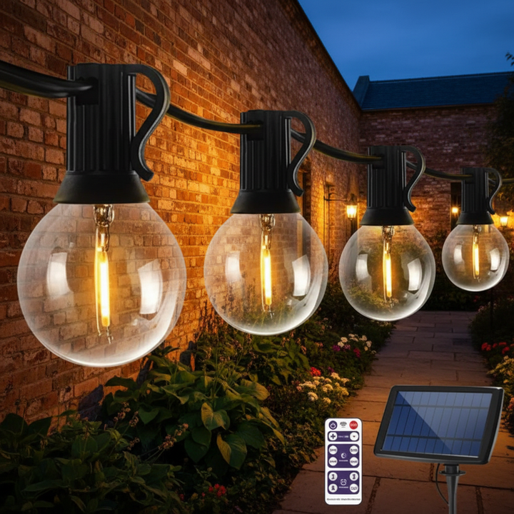 Guirnalda de Luces Solares G40 de 25 Pies, Luces LED Impermeables para Exteriores, Luces de Navidad de Filamento G40 Blanco Cálido, Luces Decorativas Solares