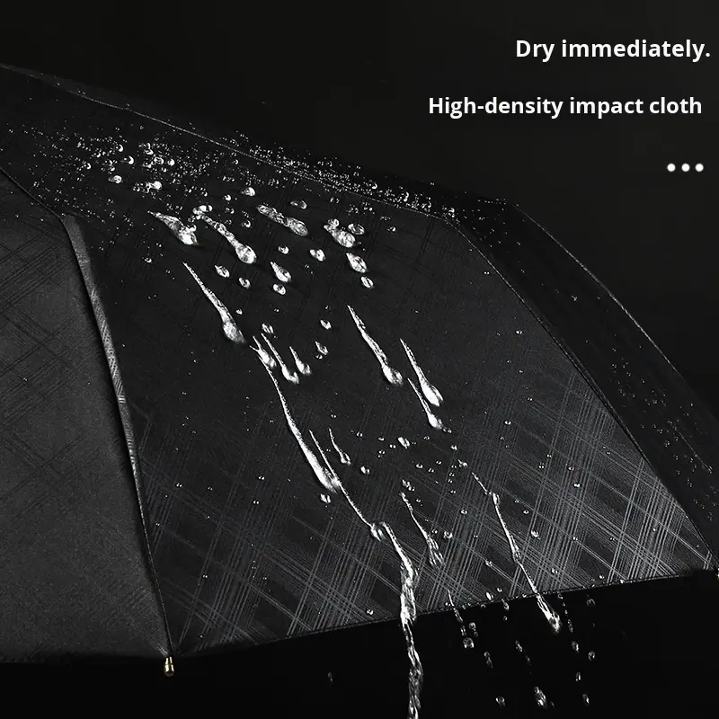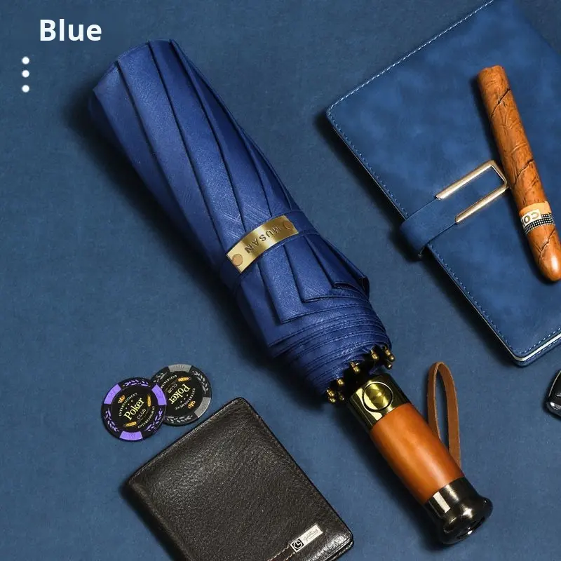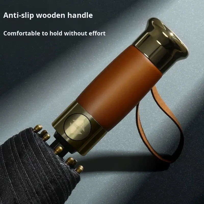 Paraguas Plegable Automático de 25 Pulgadas con 10 Varillas, Mango 70% de Madera, Apertura y Cierre Automáticos, para Publicidad, Negocios, Sol y Lluvia
