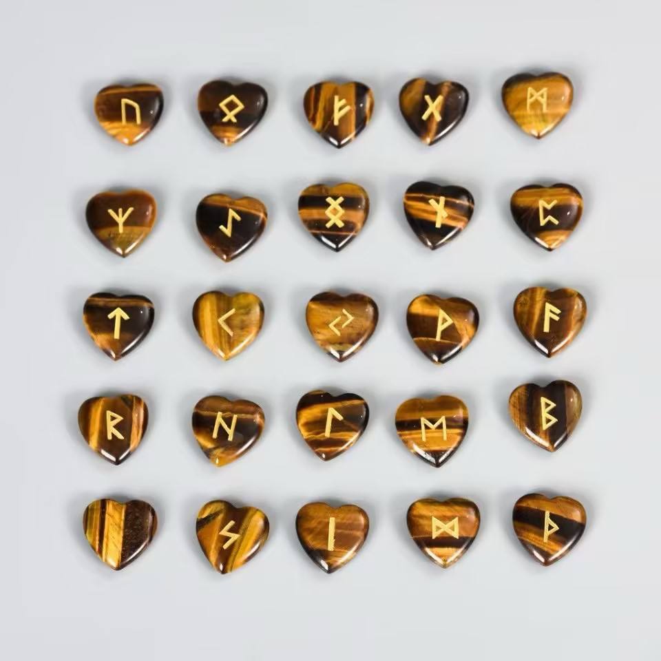 Juego de 25 unidades de cristales naturales grabados, piedra de runa de corazón, piedra de adivinación de Aventurina verde, juego de piedras de adivinación de energía Reiki