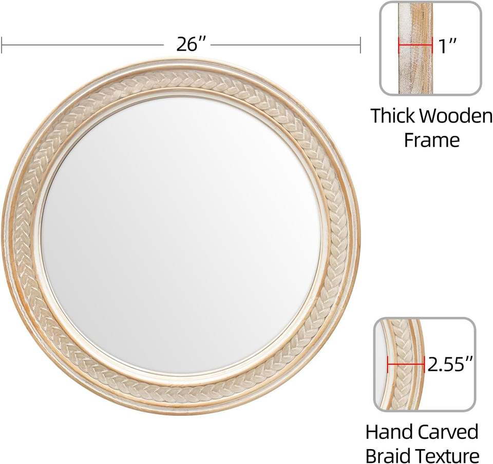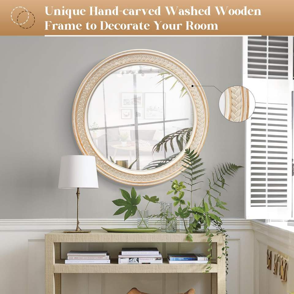 Espejos redondos bohemios de 26 pulgadas para pared, espejo circular rústico con marco tallado, grandes espejos de pared decorativos para sala de estar