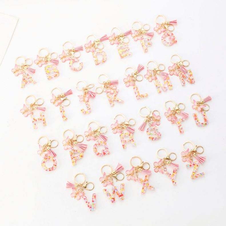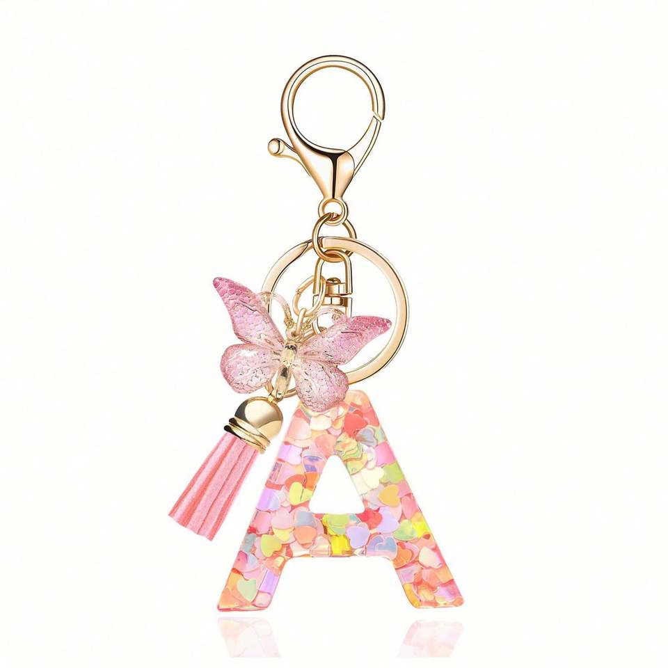 Llavero de Resina con Iniciales de 26 Letras y Colgante de Mariposa con Borla, Anillo para Llaves, Accesorio Elegante para Bolsos de Mujer