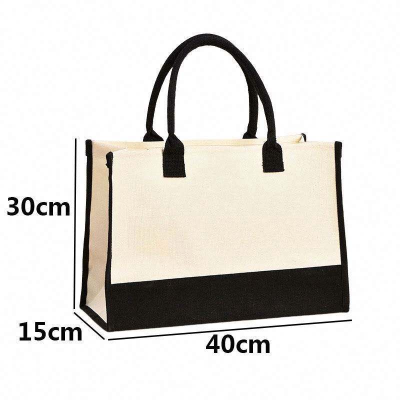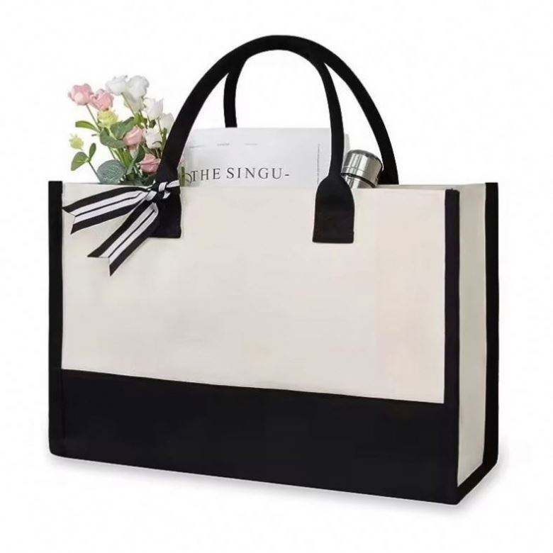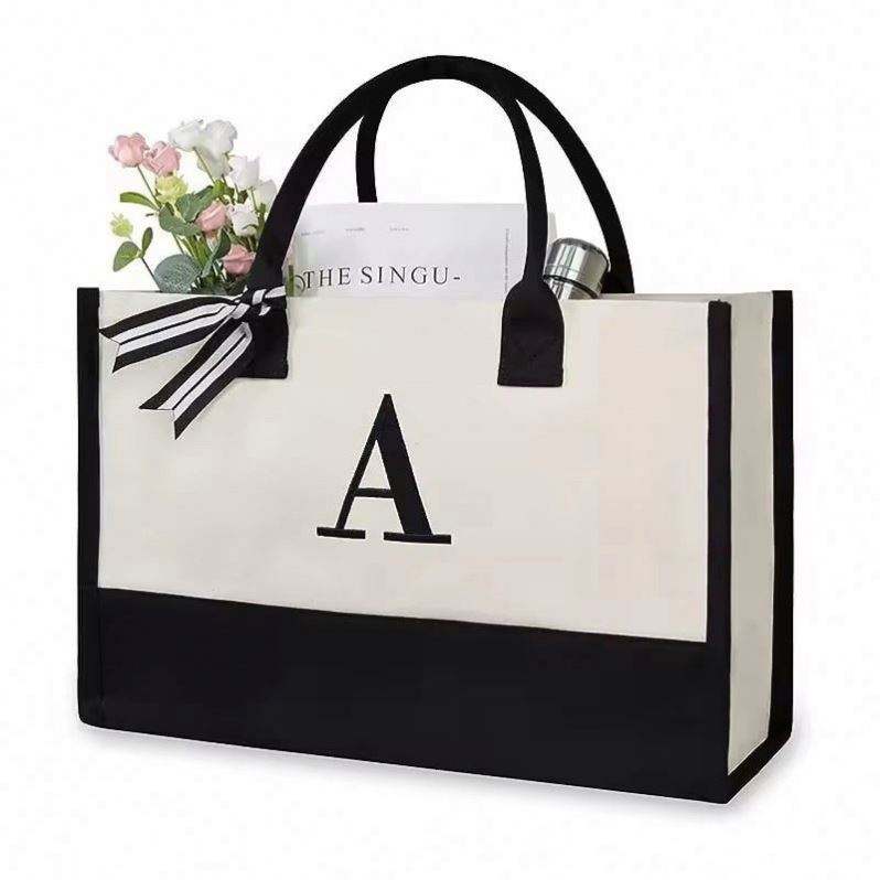 Bolsa de Playa de Lona Personalizada con Iniciales de 26 Letras, Bolsa de Regalo de Lona Blanca y Negra Clásica Reutilizable con Logotipo Personalizado