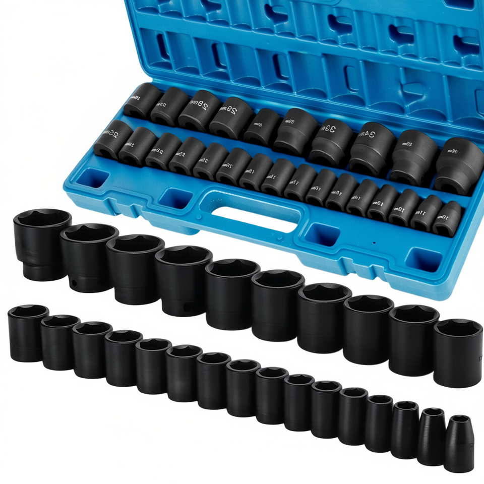 Juego de 26 Llaves de Impacto de 1/2 Pulgada, Métricas de 10mm a 36mm, de 6 Puntas, Acabado en Óxido Negro, Grado Industrial