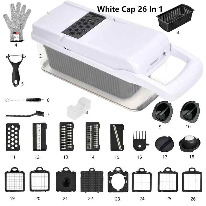 Cortador de Verduras Multifuncional 26 en 1, Utensilios de Cocina de Metal, Rebanador Mandolina, Cortador Manual de Verduras