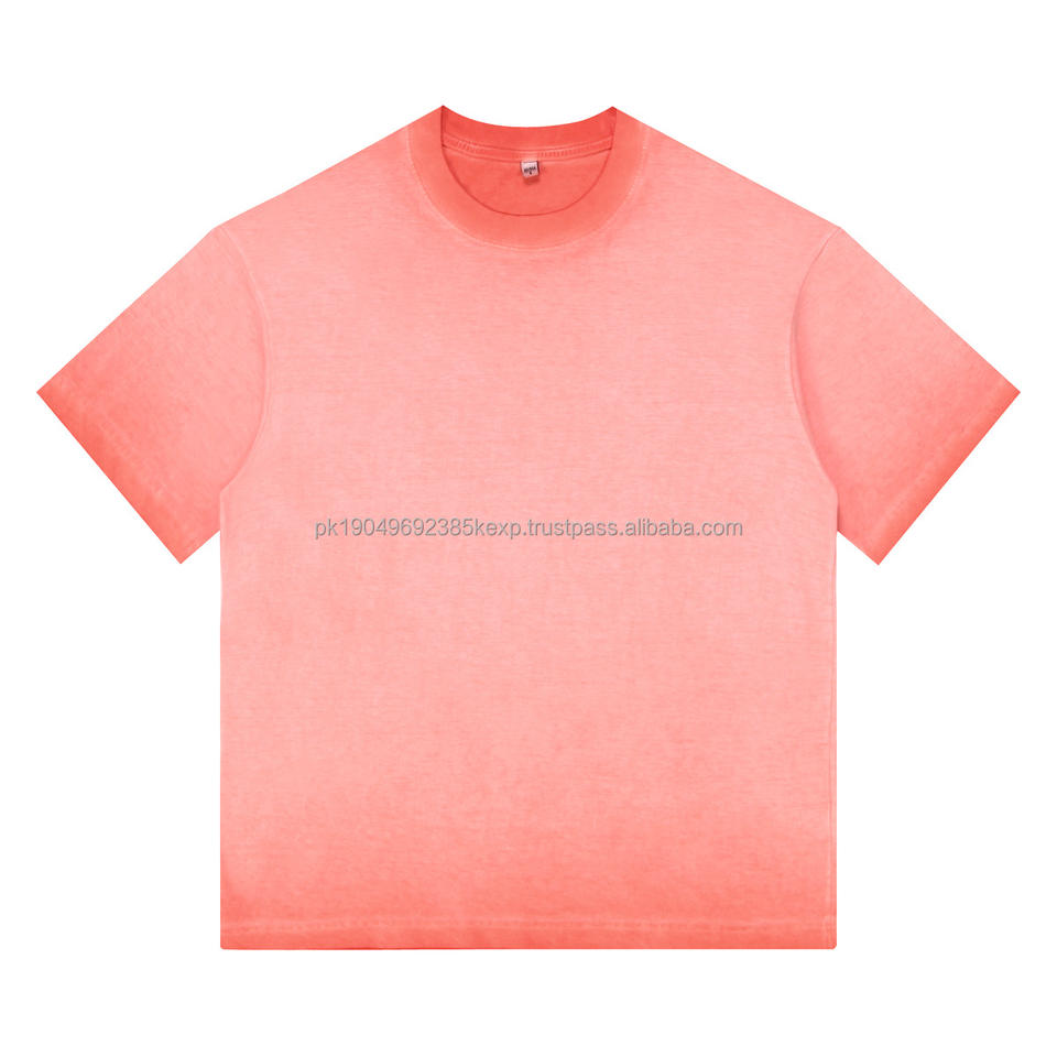 260 G 100% Camiseta lavada de algodón Camiseta de gran tamaño de alta calidad de peso pesado Camiseta con degradado de logotipo personalizado