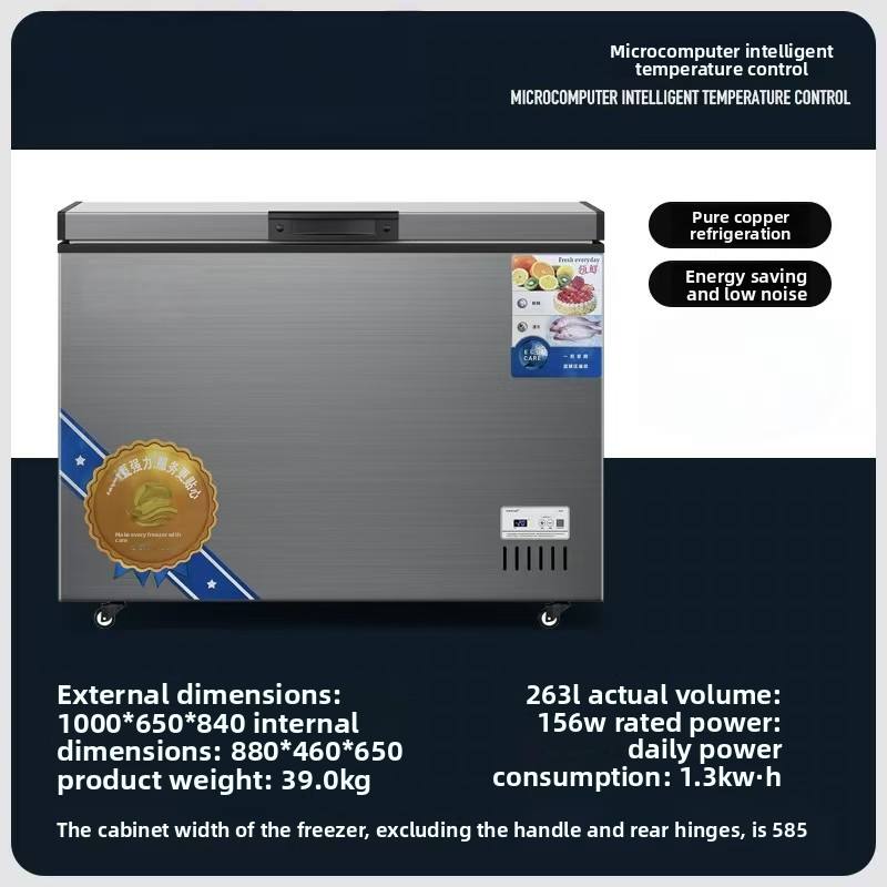 Congelador horizontal tipo arcón 260 L, una puerta, capacidad adecuada para uso doméstico y dormitorios, congelación rápida