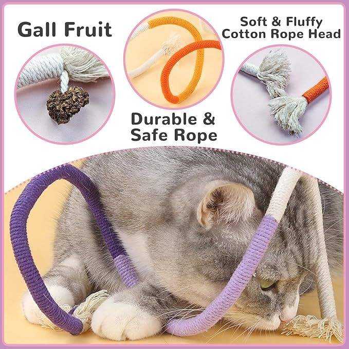 Juguetes de Nailon para Masticar para Gatos de 27.55 Pulgadas con Bloques de Color Naranja+Amarillo+Beige, Seguros y con Efecto Estimulante para Aliviar el Aburrimiento