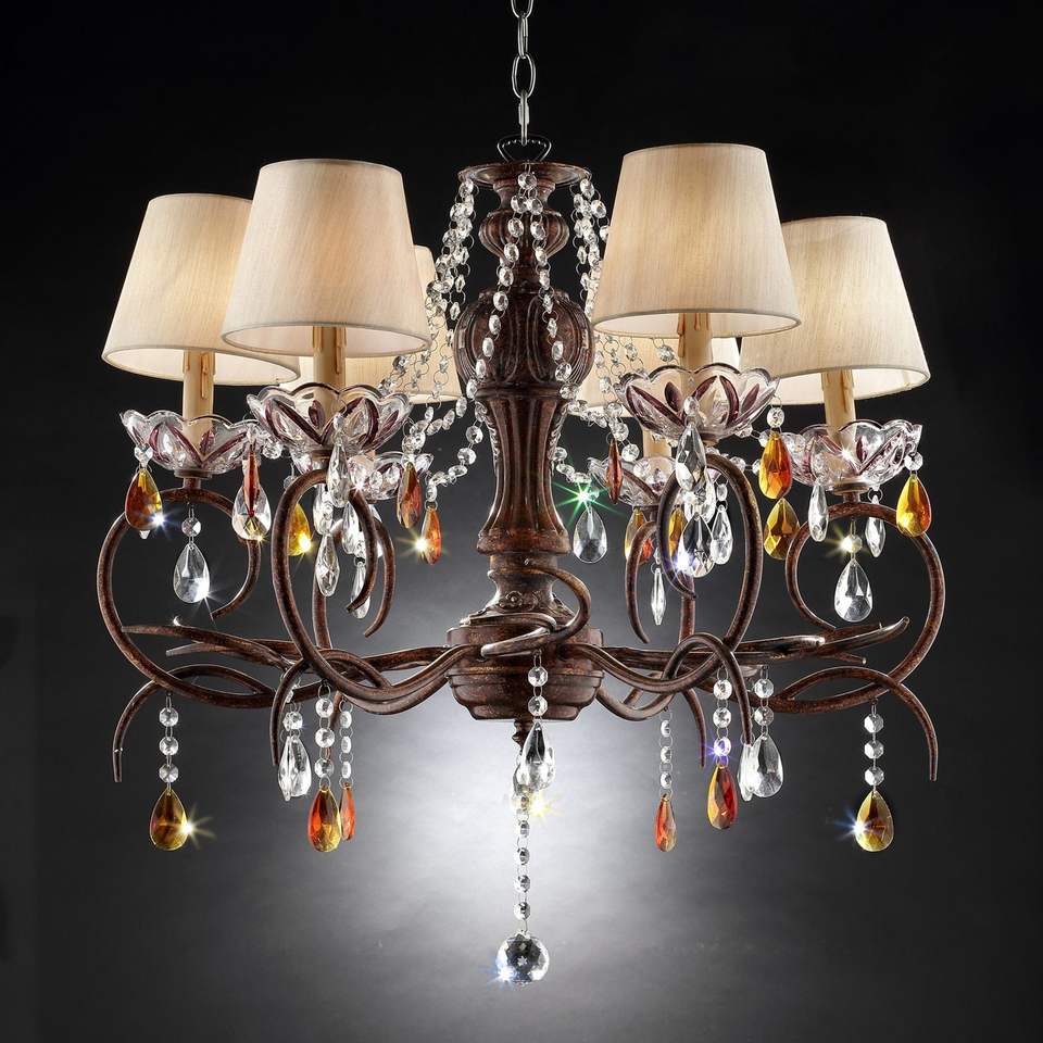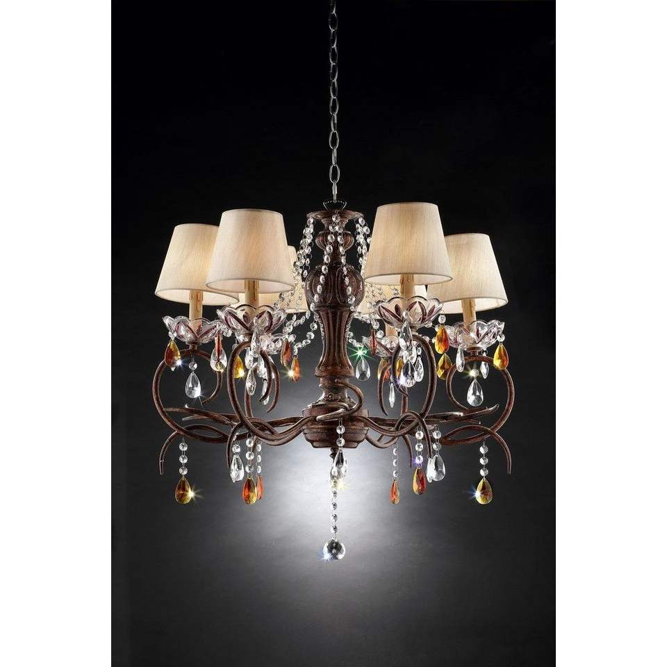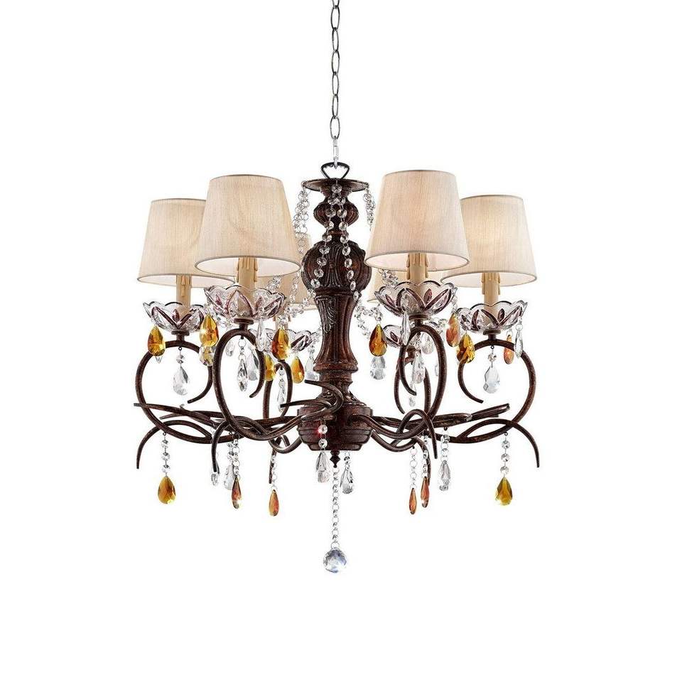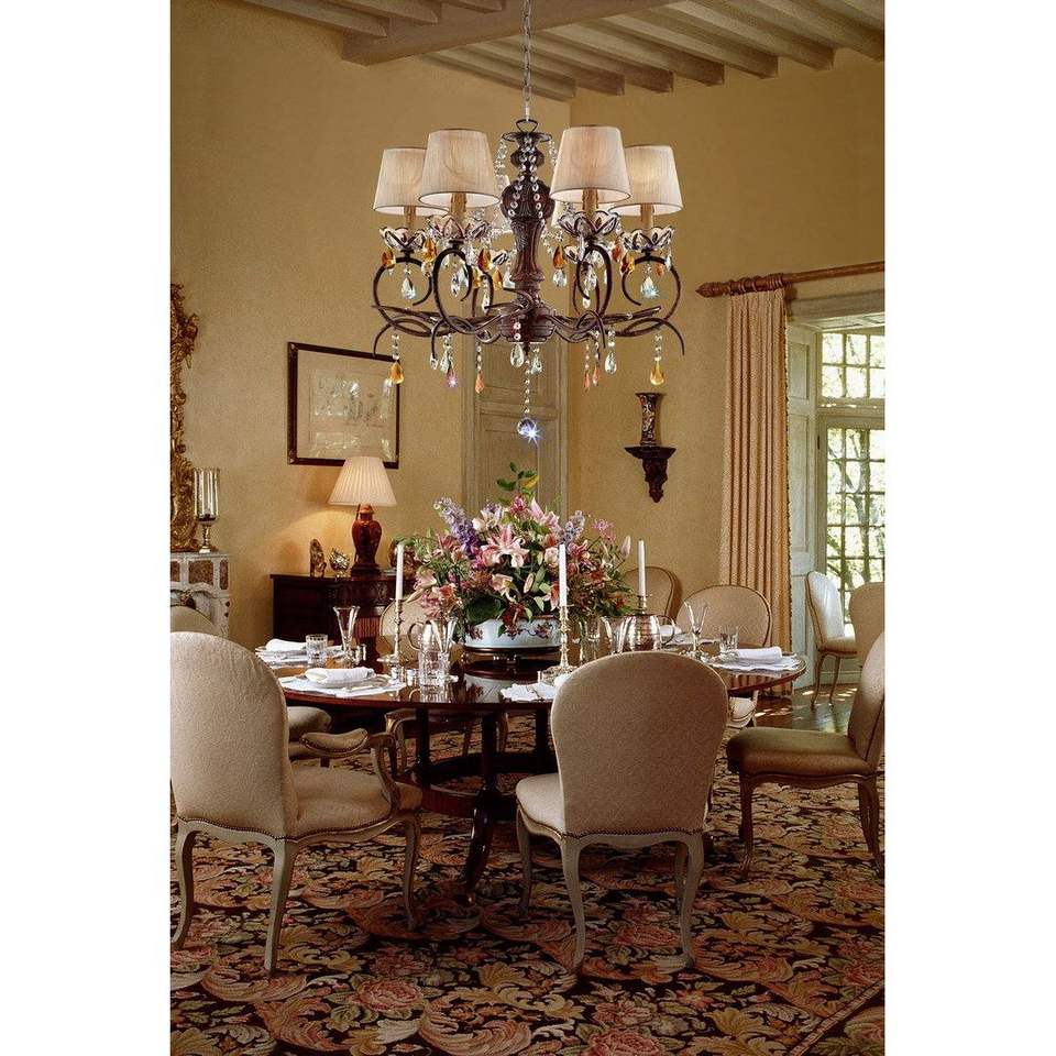 Lámpara de Techo 'Magnolia' de Metal de 27 Pulgadas de Alto, Acabado Bronce, con Detalles de Cristal, Lámpara Colgante