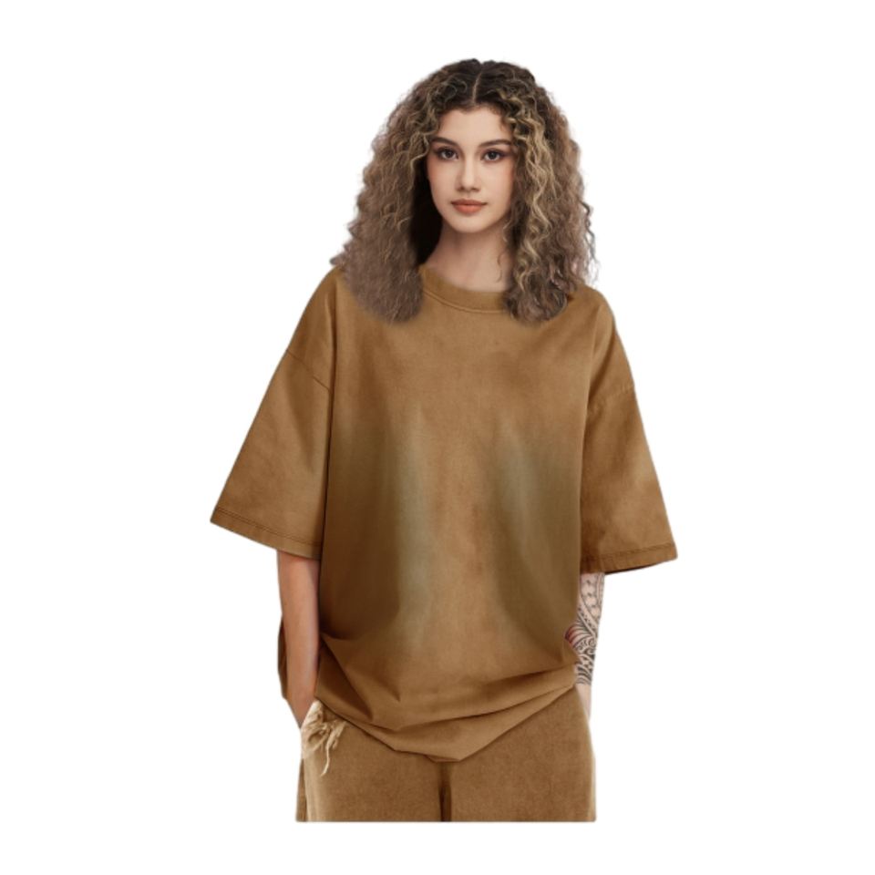 270GSM-Camiseta desgastada con spray para hombre, camiseta vintage de gran tamaño con cuello redondo, unisex
