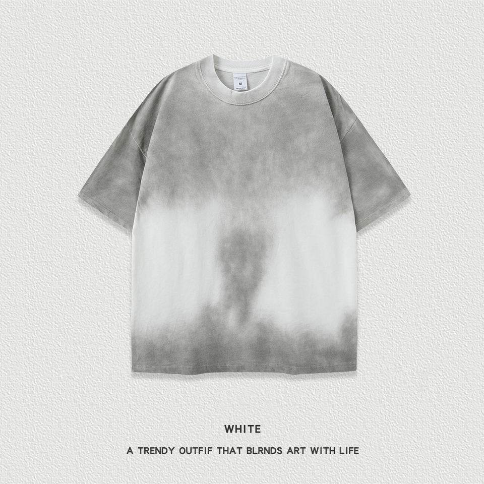 Camiseta lavada unisex desgastada con spray 270GSM, camiseta vintage de gran tamaño con cuello redondo para hombre