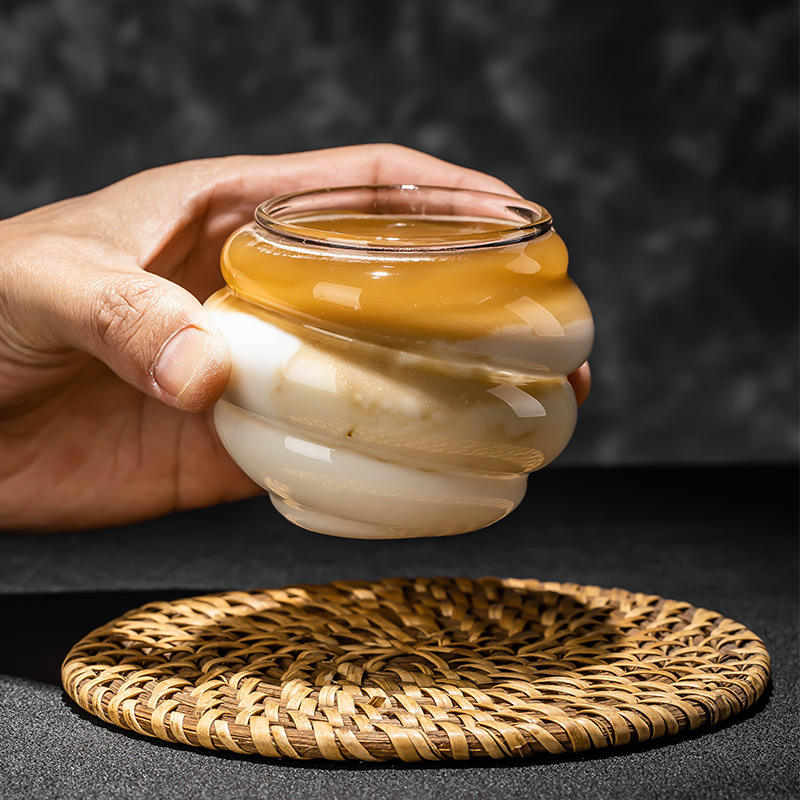 Nombre del Producto:Taza de café de vidrio de borosilicato alto de 270 ml con diseño en espiral de montaña y río