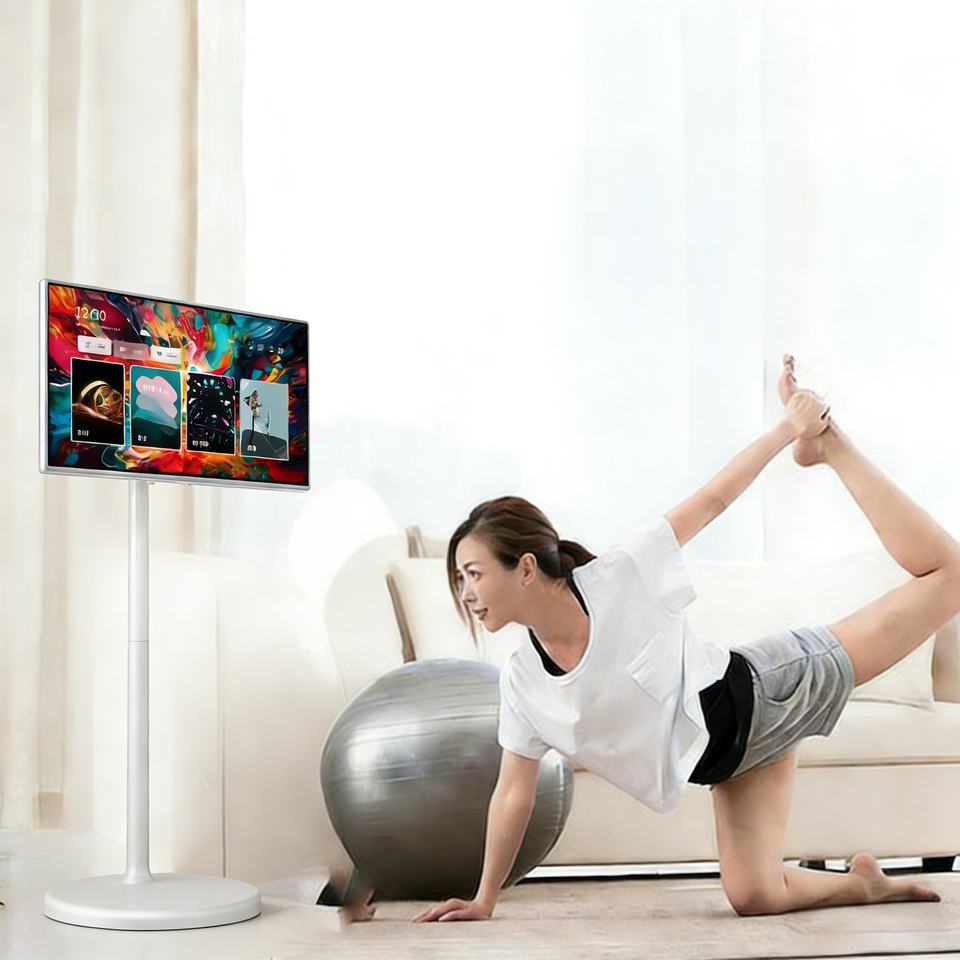 Monitor LCD Táctil FHD de 27 Pulgadas, con Base Móvil, Pantalla Giratoria, Sistema Android, Proyección Inalámbrica para Negocios y Fitness