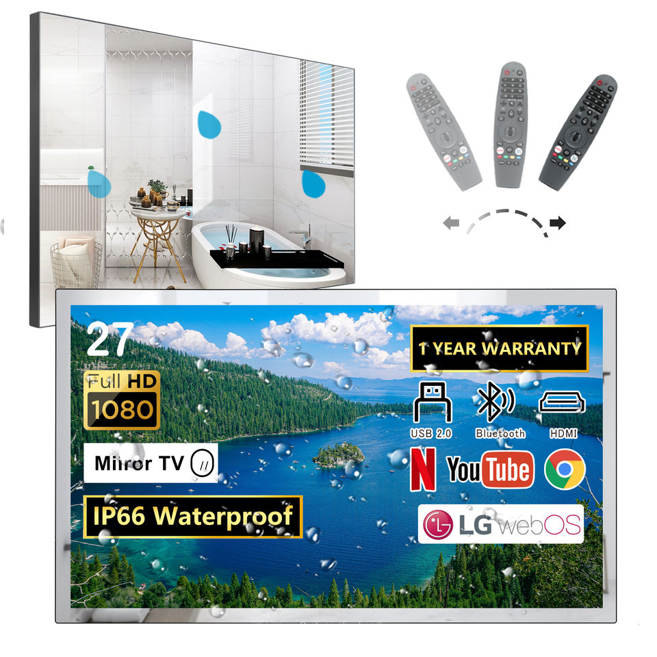 WebOS mirror TV, Magic Remote, cubierta de Gel de sílice impermeable remota, soporte remoto, soporte de TV, juego de tornillos, Manuales (inglés, español), cable de alimentación (con interruptor de fuga)