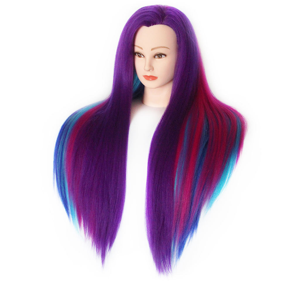 Cabeza de Maniquí para Prácticas de Peluquería, 28 Pulgadas, 100% Fibra de Alta Temperatura, Colorida, para Entrenamiento de Peinado y Trenzado