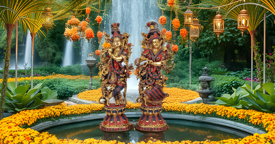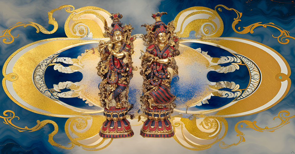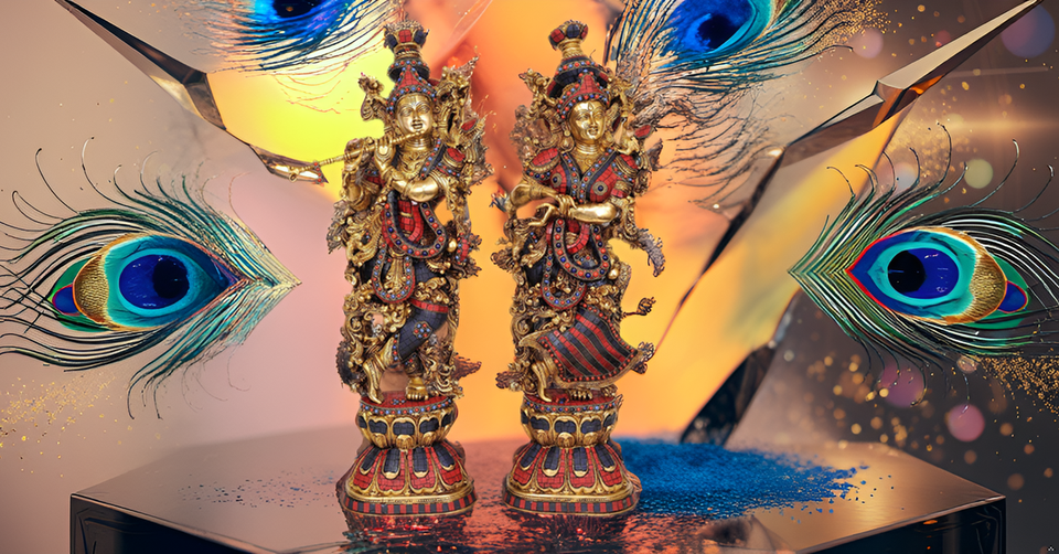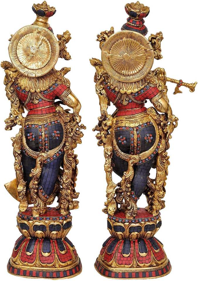 Estatuilla de escultura hindú de latón grande hecha a mano de 28,5 pulgadas, estatua moderna de Radha Krishna, trabajo de incrustaciones de ídolo para bodas, cumpleaños