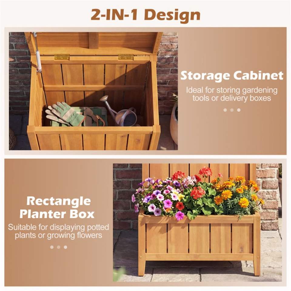 Banco de Almacenamiento Elevado de 28 Pulgadas con Tapa de Resorte a Gas y Jardinera para Entrega de Paquetes