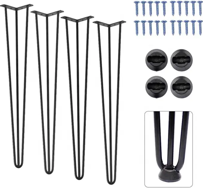 Patas de horquilla negras de 3 varillas resistentes de 28 pulgadas para comedor y dormitorio modernos Patas de muebles de acero inoxidable DIY fáciles