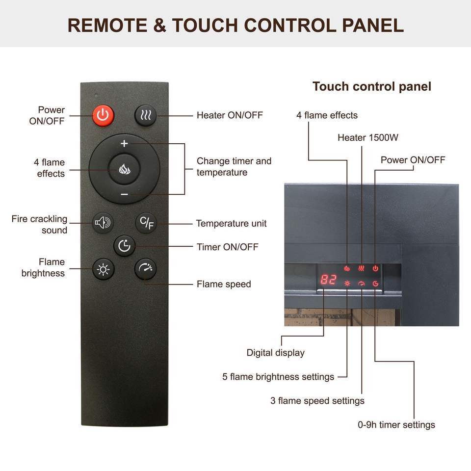 Chimenea Eléctrica Infrarroja de 28 Pulgadas con Kit de Acabado, Panel Táctil, Decoración para el Hogar, Calentador, Chimenea sin Humo y Efecto de Llamas