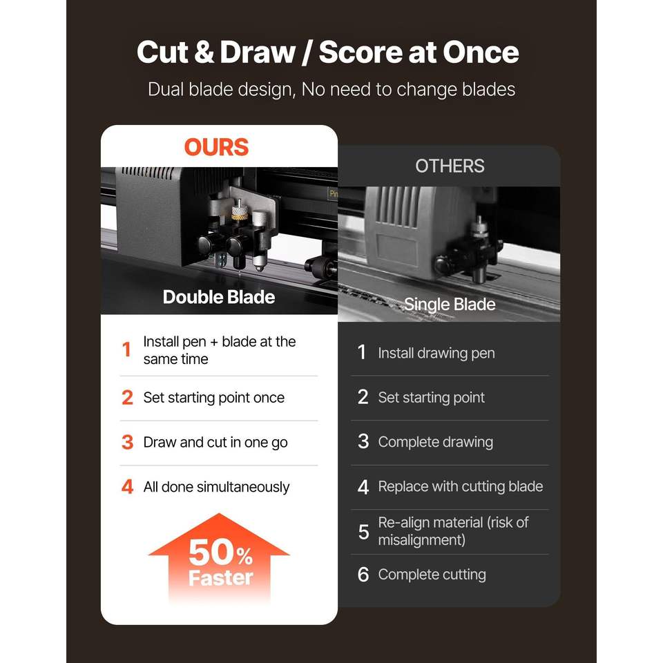 Máquina de Corte de Vinilo de 28 Pulgadas con Ancho de Alimentación Máximo, Cuchillas Dobles, Velocidad Ajustable, Pantalla LED, Herramientas de Corte y Formación de Vinilo Impreso