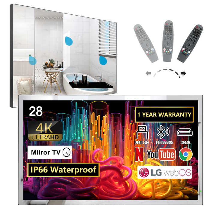WebOS Mirror TV, Magic Remote, cubierta de gel de sílice impermeable remota, soporte remoto, soporte de TV, juego de tornillos, manuales (inglés, español), cable de alimentación (con interruptor de fugas)