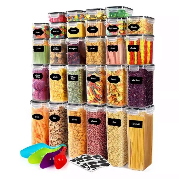 Paquete de 28 contenedores herméticos de almacenamiento de alimentos con tapas, contenedores de cereales sin BPA, almacenamiento para organización de despensa de cocina