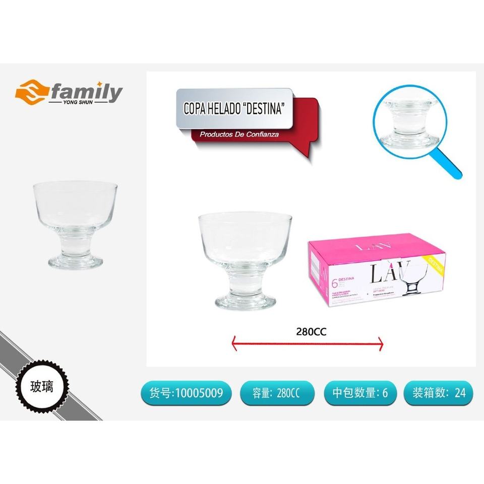 Taza de helado de 280cc (DES55FSX) para vasos de vidrio 8692952002588