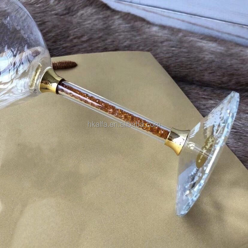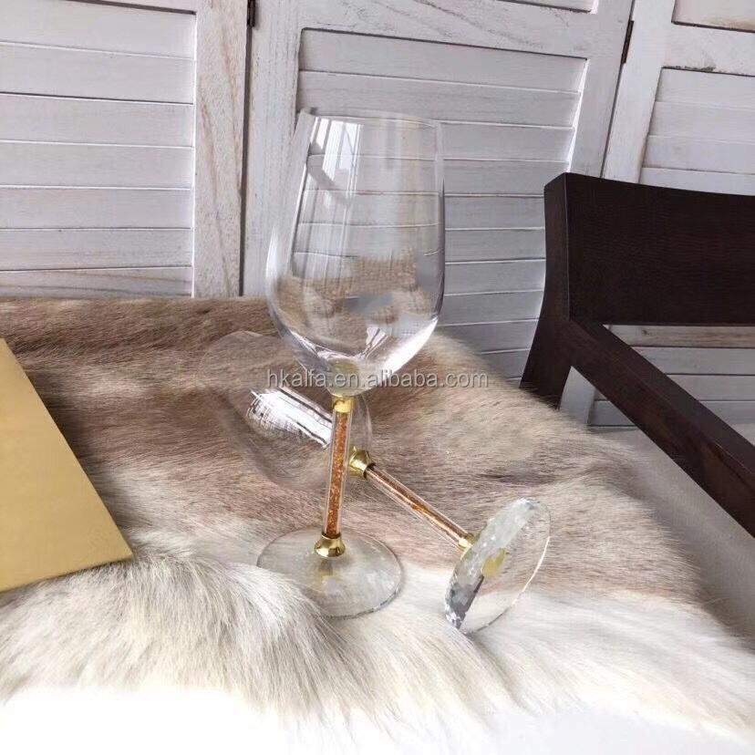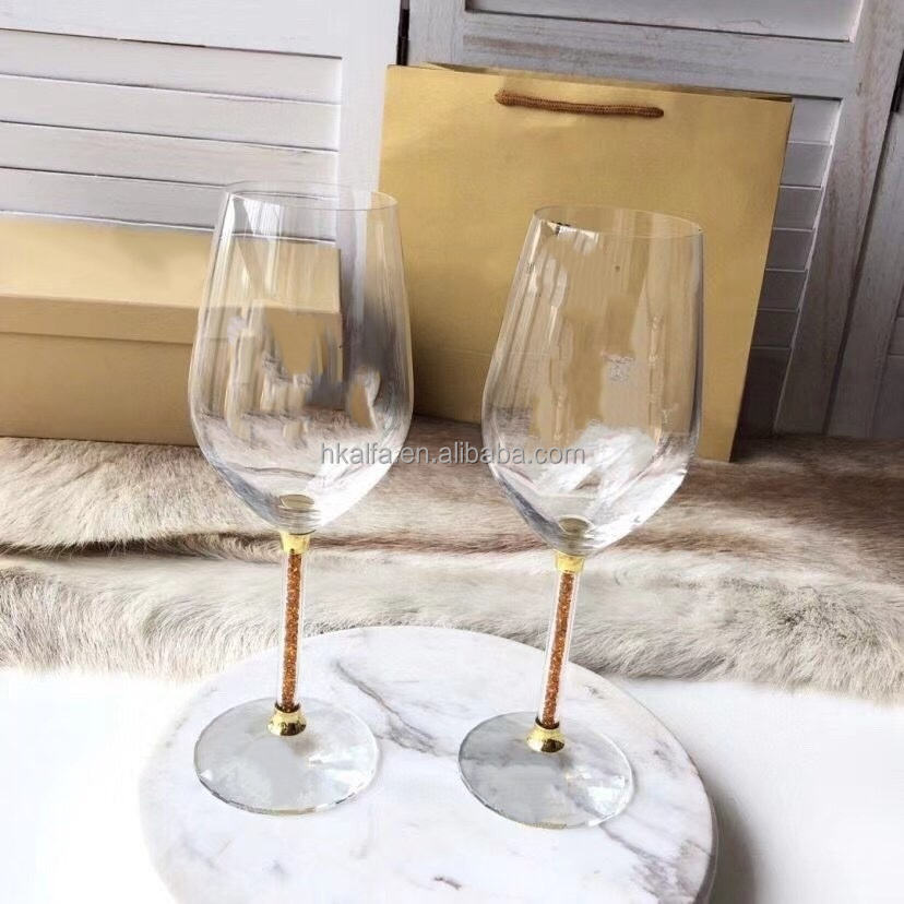 Copas de Vino de Cristal Transparente de 280 ml con Logotipo Personalizado, Diseño de Diamantes Dorados, Color Rojo
