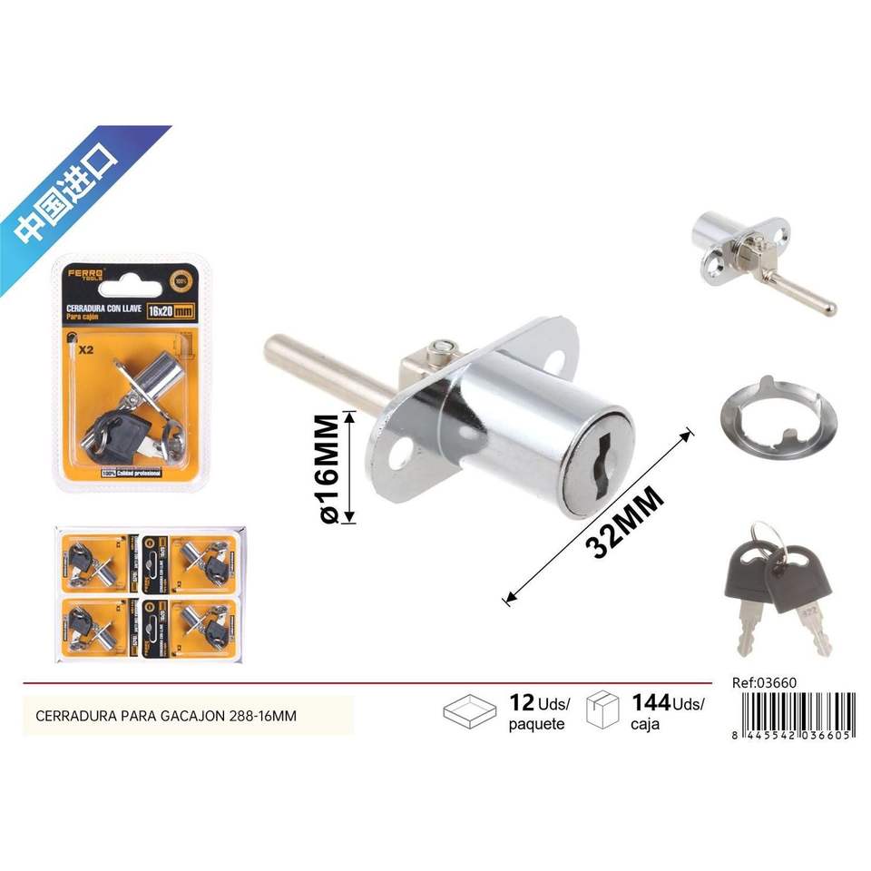 Cerradura de Leva de Diseño Tradicional de 288-16 mm, Accesorio para Muebles con Llave, para Dormitorio, Escuela, Oficina, Escritorio, Cilindro de Aleación de Zinc, Huella Dactilar