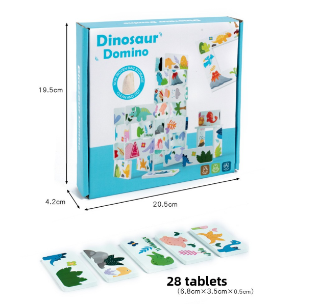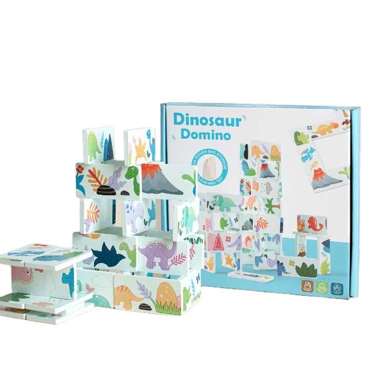 28 Uds. De bloques de dominó de dinosaurio, juego de apilamiento a juego, juguete educativo de mesa para habilidades motoras finas, coordinación mano-ojo