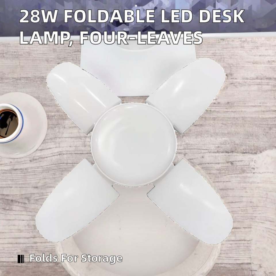 Lámpara de Escritorio LED Plegable de 28W E27 con Diseño de Cuatro Hojas, Lámpara de Techo para el Hogar con Alimentación CA para Uso Residencial