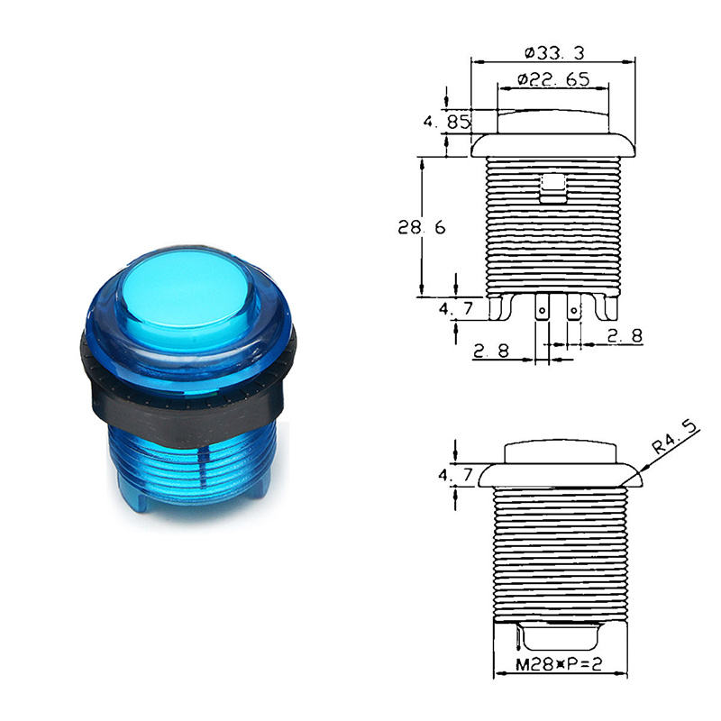 Botón pulsador LED translúcido momentáneo de 28 mm para arcade, interruptores redondos iluminados de 5 V para máquinas de arcade, piezas de kit de bricolaje para juegos.