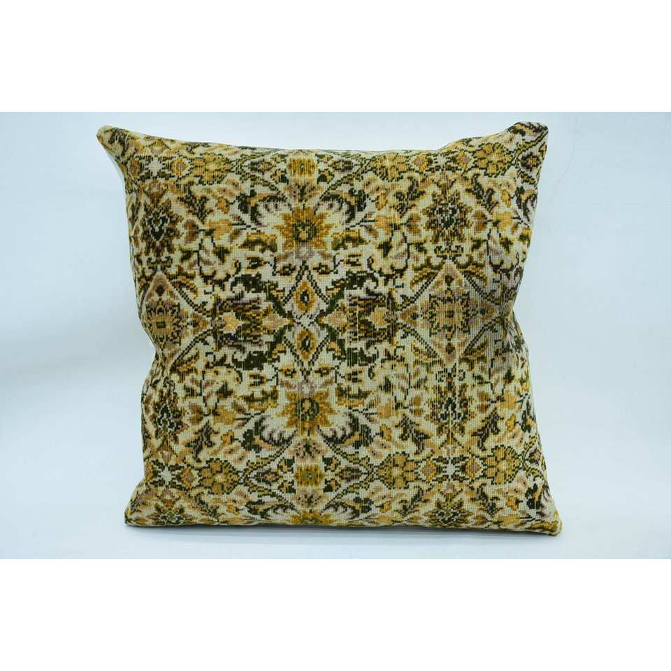 Almohada de lana beige de 28x28 pulgadas con estampado natural Kantha Patchwork Técnica tejida vintage
