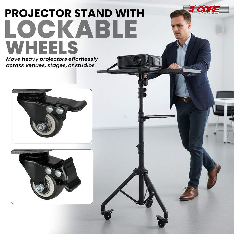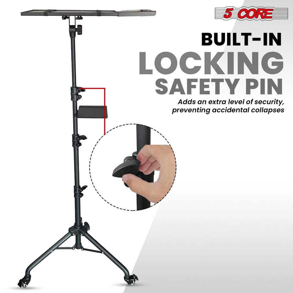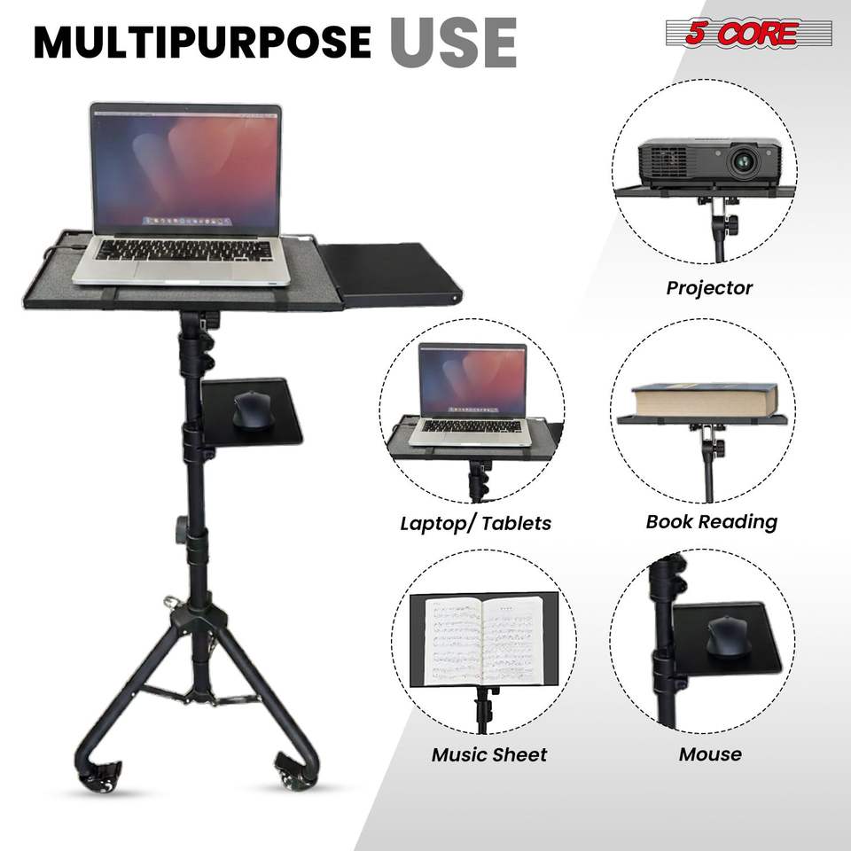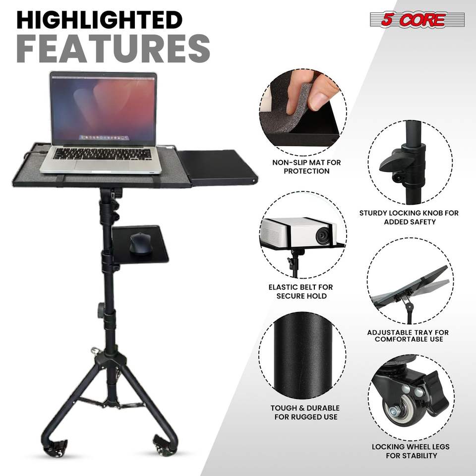 Carrito Portátil Ajustable para Laptop de 29.5 a 71 Pulgadas con Soporte para Teléfono, Soporte para Proyector y 2 Estantes