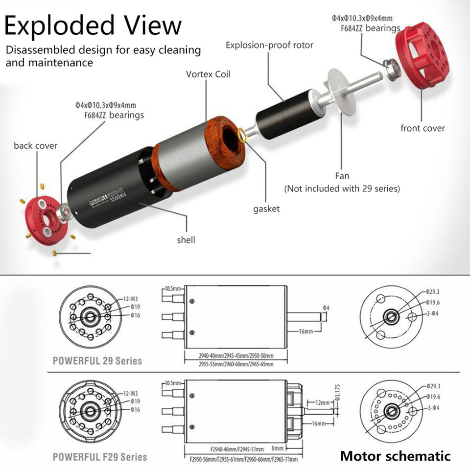 Motor sin escobillas a prueba de agua con rotor interno serie 29, estructura refrigerada por agua para modelos de barcos de carreras Rc 1/8 1/10, coches Rc