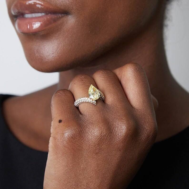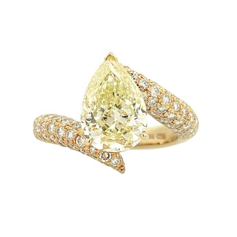Anillo con Diamante Amarillo Corte Pera en Forma de Lágrima