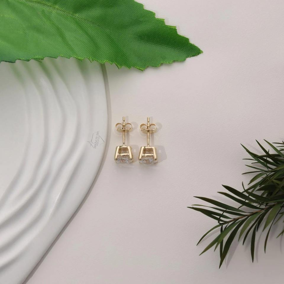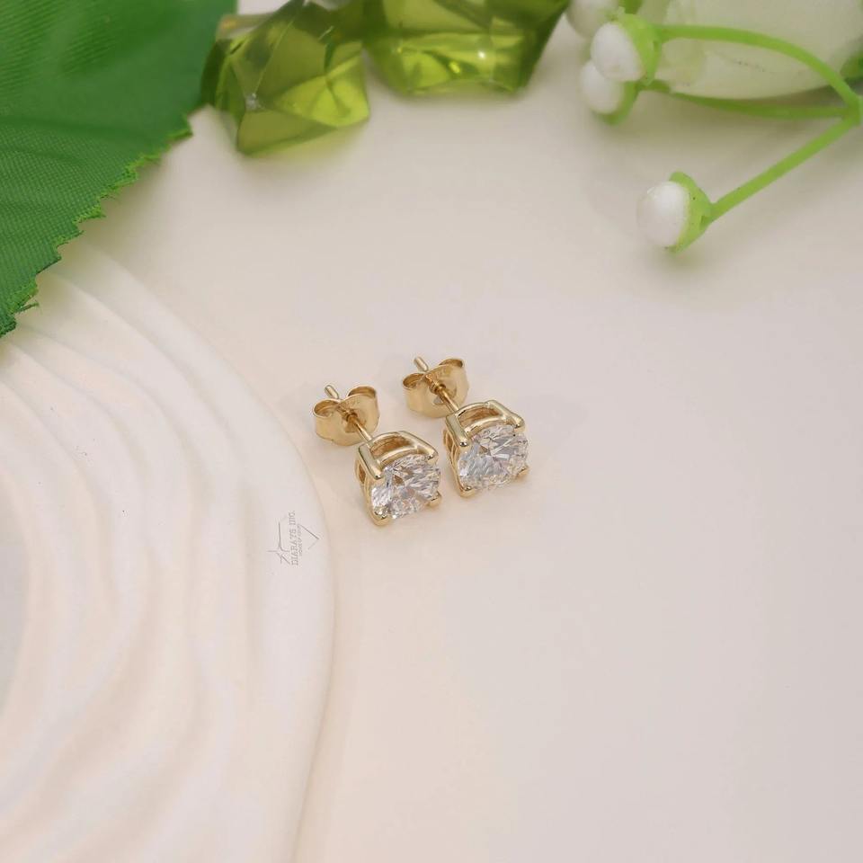 Pendientes de Diamantes Redondos Cultivados en Laboratorio de 2 Quilates_ Oro Amarillo de 14k