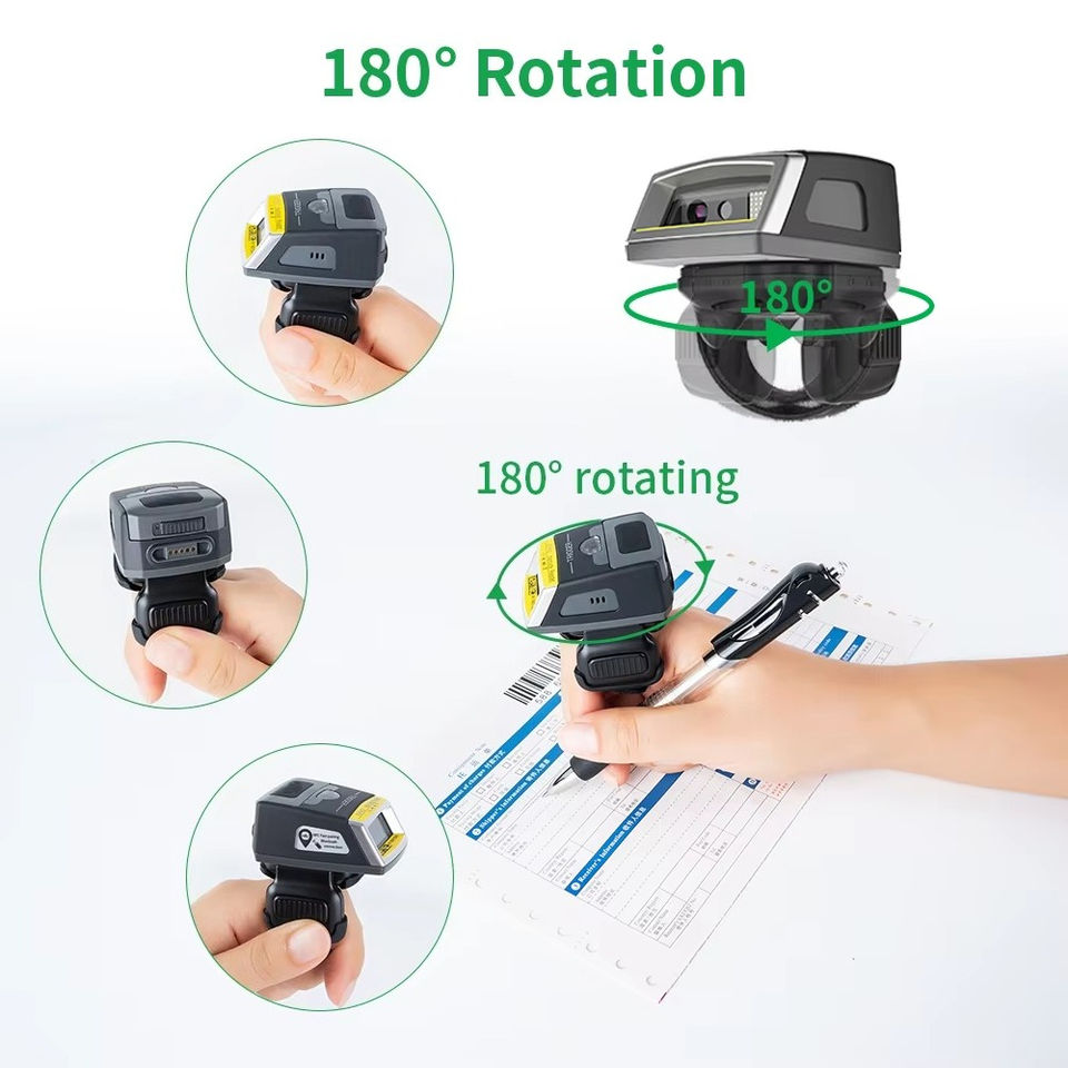Escáner de Código de Barras QR Inalámbrico con Anillo para Dedo 2D, Escáner de Código de Barras para Pantalla de Teléfono Celular
