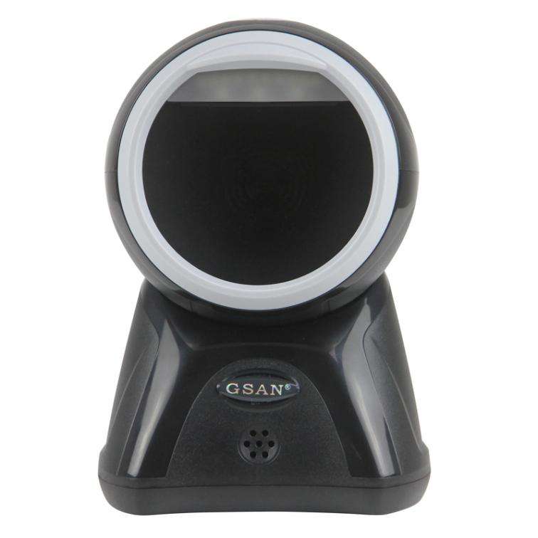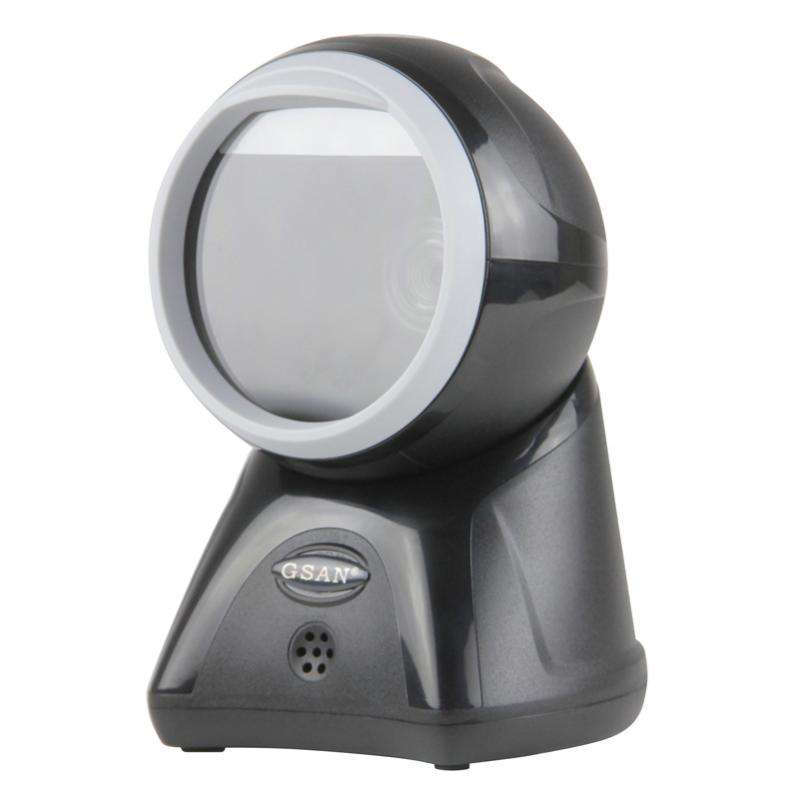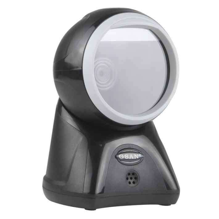 Escáner de código de barras omnidireccional 2D, escáner de barra de stock negro, escaneo automático, manos libres, USB, escáner de escritorio con cable