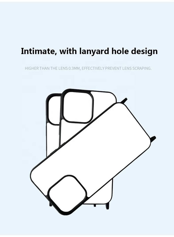 Funda de teléfono de sublimación 2D con orificio para colgar en la correa para iPhone 12 13 14 15 Pro Max 16 funda de teléfono de sublimación en blanco