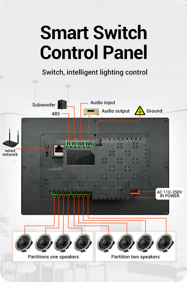 Amplificador Inteligente BT 2G 16G para Hogar Reproductor de Música de Pared de 10 Pulgadas Salida de Altavoz de 8 Canales Reproducción en 2 Zonas Sistema de Cine en Casa