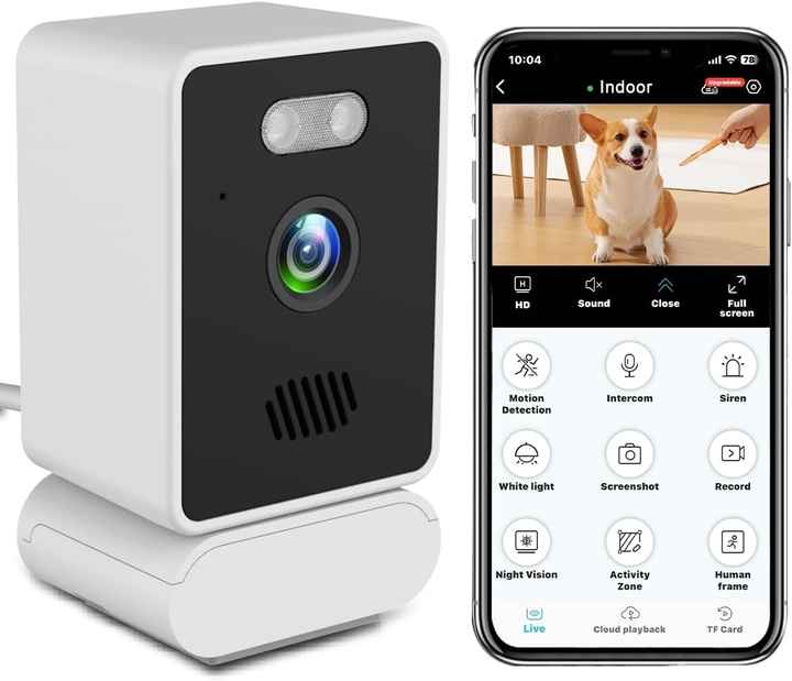 Mini Cámara de Seguridad CCTV Interior HD de 2K y 3MP con Wi-Fi, Audio Bidireccional, Visión Nocturna, Sensor CMOS, Compatible con Nube y Tarjeta de Memoria