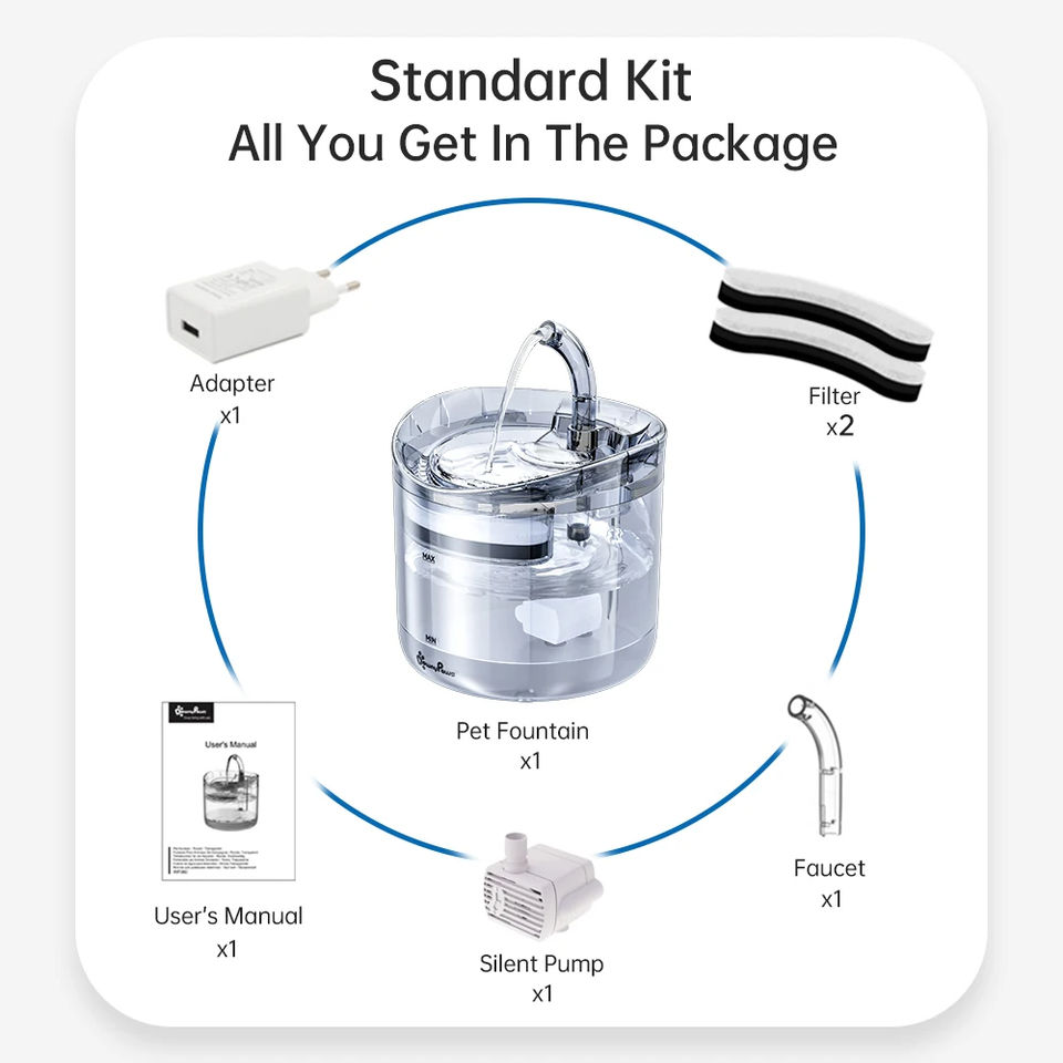 Dispensador de agua inteligente de 2 L para mascotas con sensor, bebedor automático recargable y seguro para perros, fuente de agua para gatos con grifo