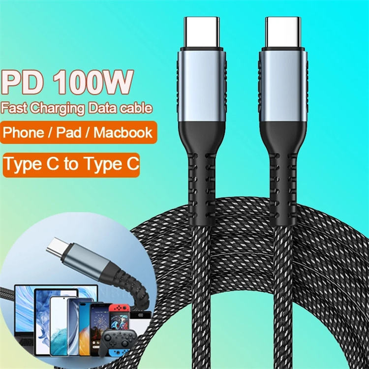 2M 100W Tipo C Cable USB C a C Cable para iPhone 13 Huawei Xiaomi POCO X3 M3 Samsung Macbook iPad Cable de datos de carga rápida