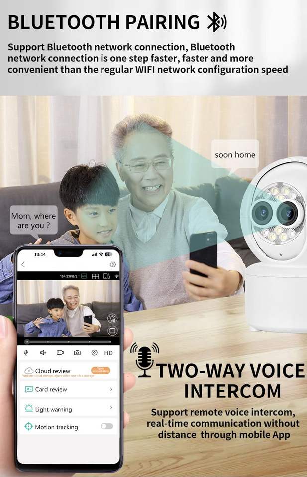 Cámara inteligente binocular Ptz de 2Mp Cámara web con zoom 5X con visión nocturna Cámara de vigilancia inalámbrica de almacenamiento de tarjeta Micro Sd de baja potencia